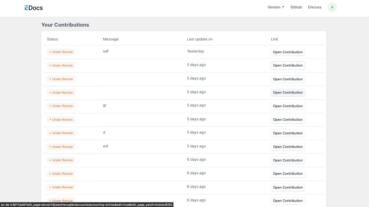 - You can click on open contribution to continue your work or use the comment system to communicate with the reviewer