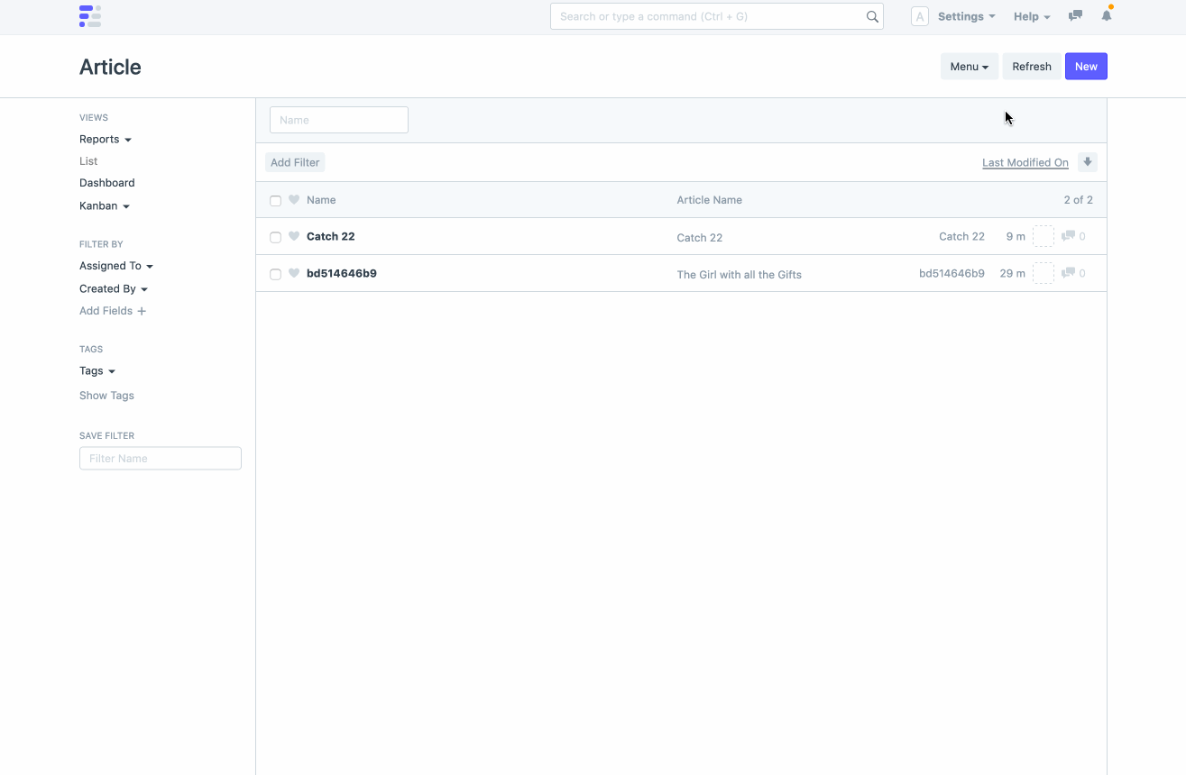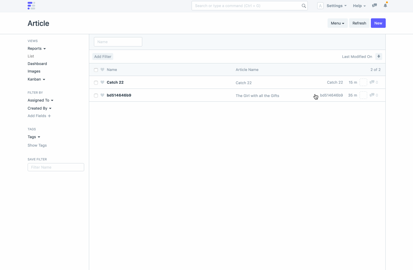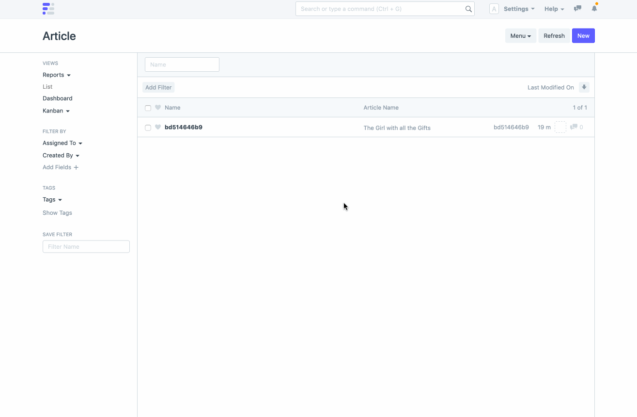 Now, the name of the document will be the Article Name and it must be unique across Articles. So you cannot create another article with the same name.